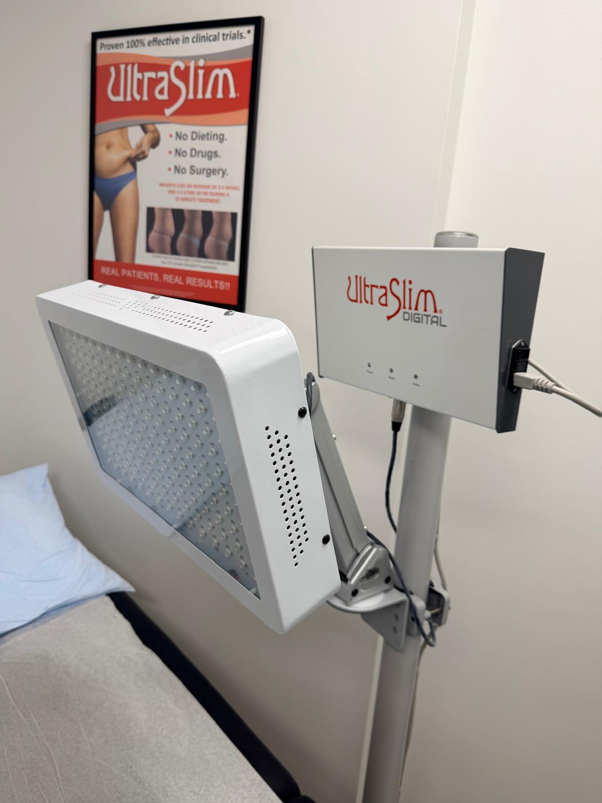 The patented UltraSlim mechanism of action delivers a unique, high-powered red light, which is absorbed by the chromophores of the mitochondria (cytochrome c oxidase), causing the adipocyte to respond as if it was a time of famine. The fat cell’s membrane is disrupted, resulting in temporary pores which allow the fat to escape.